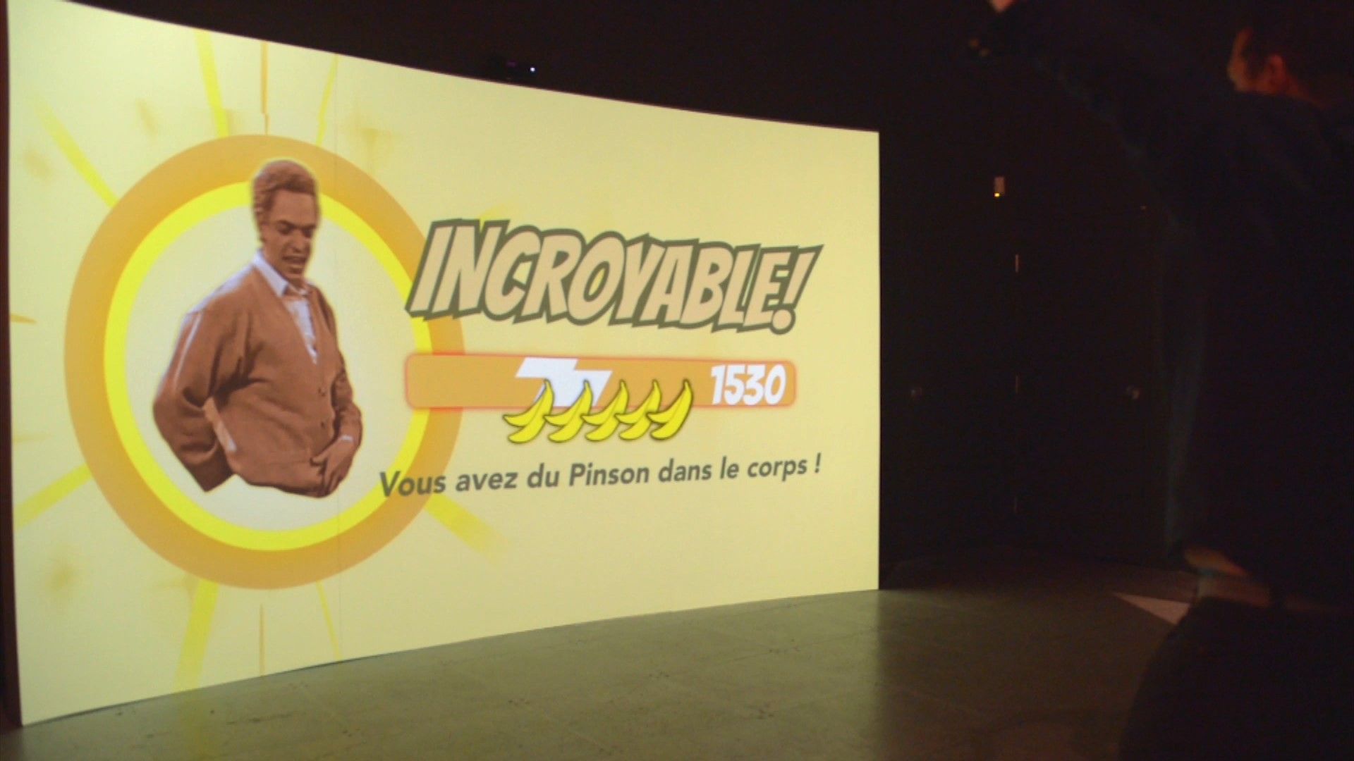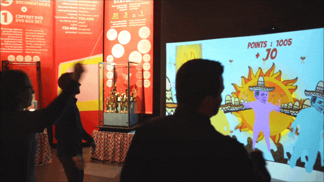 Conceptualisation et production d’une installation interactive ludique à la manière du jeu Just Dance rendant hommage à la danse favorite du personnage mythique de Rénald « Pinson » Paré de l’émission La petite vie. Jusqu’à six interacteurs peuvent danser avec lui en suivant la mélodie de la célèbre chanson La Bamba de Ritchie Valens. L’univers coloré et éclaté de La petite vie se retrouve dans la représentation humoristique des participants à l’écran. L’objectif du jeu : faire le plus de points possible en imitant le mieux les mouvements de Rénald.
